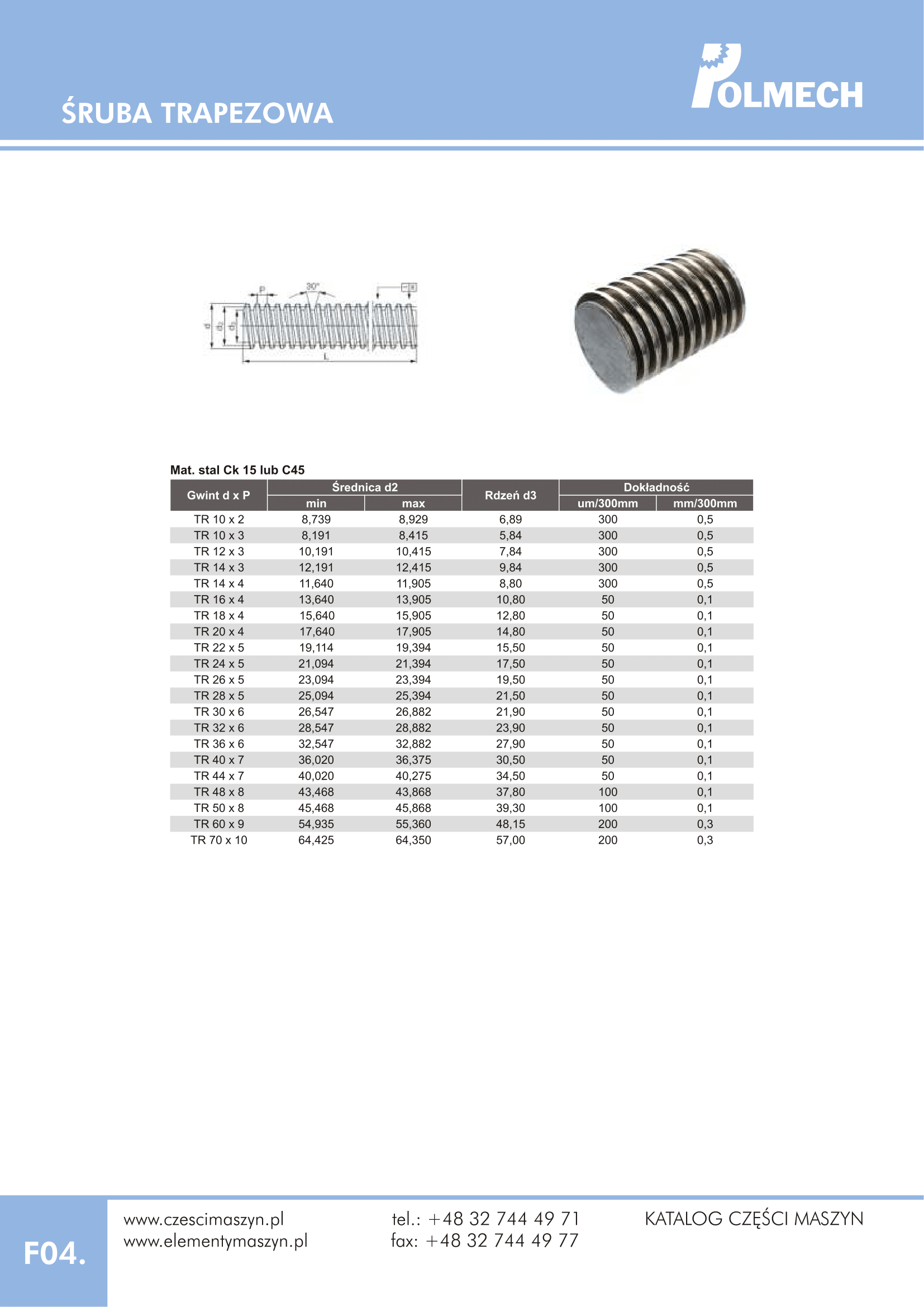 Posiadamy śruby trapezowe o długościach do 6m na zamówienie.